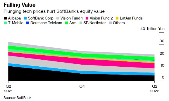软银一直在努力应对公共投资估值的下降,在刚刚结束的这个季度,愿景基金的公共投资净值出现了总计1.19万亿日元的亏损。其中,中国商汤科技集团公司占3640亿日元,美国外卖公司Doordash公司占2250亿日元,印尼叫车和电子商务公司GoTo集团占1080亿日元。