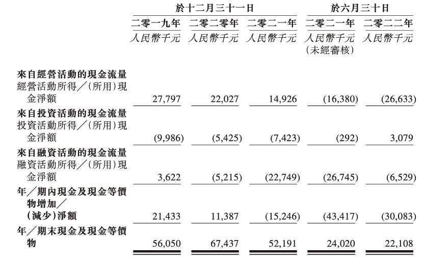 智通财经APP注意到,今年上半年,除了来自投资活动的现金流量以外,公司其余两大现金流净额均为负值。尤其是经营活动产生的现金流净额,由2021年末的1492.6万元转为今年上半年末的-2663.3万元。