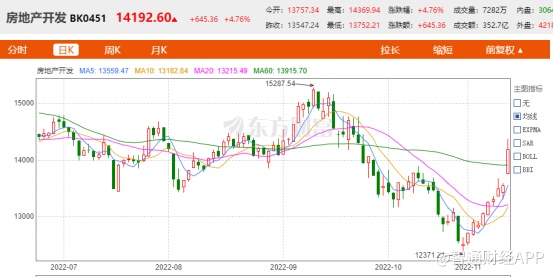 据智通财经APP了解,自10月底以来,房地产板块就整体迎来上行走势,不到半个月时间已修复至14000点以上。据富途行情显示,碧桂园在11月份以来的9个交易日里股价累计涨幅为118%,直接实现翻倍。