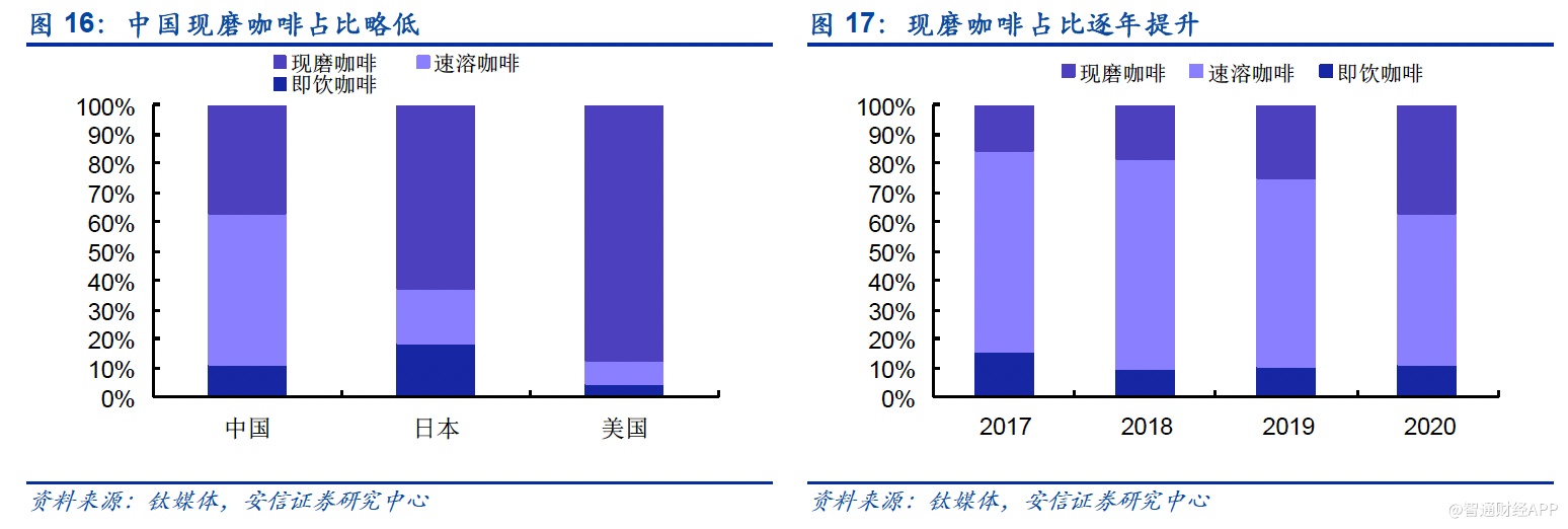 在智通财经APP看来,首先是因为咖啡作为舶来品,相比于海外发达国家其在国内的发展历史仍然较短。以星巴克为例,其于1999年正式进入中国,至今也不过20余年,国内消费者对咖啡这类西式饮品的接受度尚处于上升期。