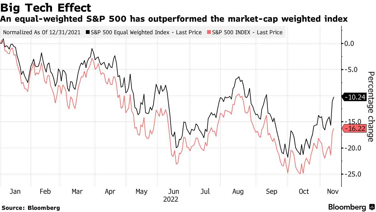 权重相等的标普500指数的表现优于现在的市值加权指数