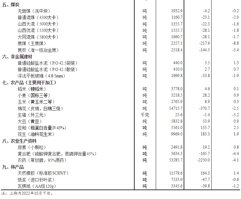 智通财经APP获悉,11月14日,国家统计局官网消息,据对全国流通领域9大类50种重要生产资料市场价格的监测显示,2022年11月上旬与10月下旬相比,14种产品价格上涨,35种下降,1种持平。其中,生猪(外三元)价格为25.6元/千克,环比下降5.2%。