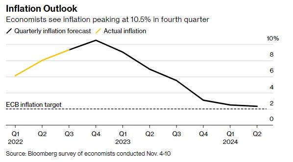通胀前景——经济学家预计欧元区第四季度通胀率将达到10.5%的峰值