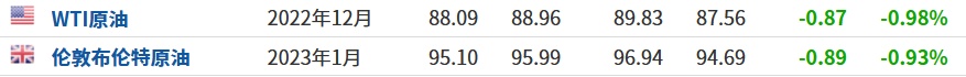 截至发稿,WTI原油期货与布伦特原油期货均跌近1%。