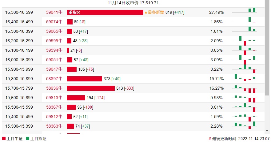 牛证街货重货区在16500-16599区间,该区间最新牛证数量为819张,较上一交易日增加417张;最多新增在同一区间。