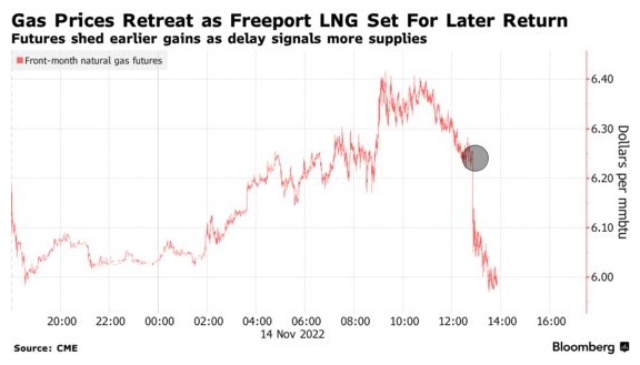 据知情人士透露,自由港液化天然气公司(Freeport LNG)告诉买家,由于重启前的维修和监管审批工作仍在继续,该公司可能会取消原定于11月和12月的发货。