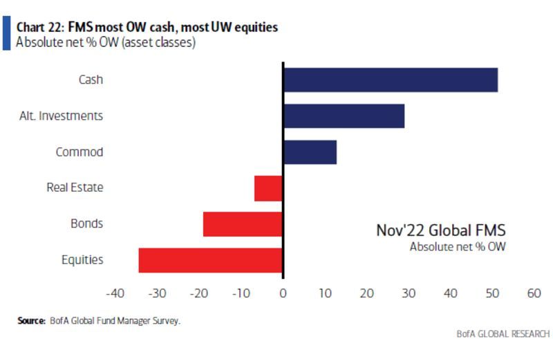 高盛策略师对此表示赞同,并警告称,由于加息周期延长的风险依然存在,风险资产的上涨“可能过头了”。美国银行对基金经理的最新调查也显示,在资产配置方面,基金经理们在最大程度地减持股票、同时最大程度地增持现金。