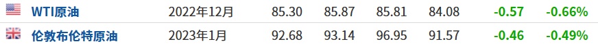 3. 截至发稿,WTI原油跌0.66%,报85.30美元/桶。布伦特原油跌0.49%,报92.68美元/桶。