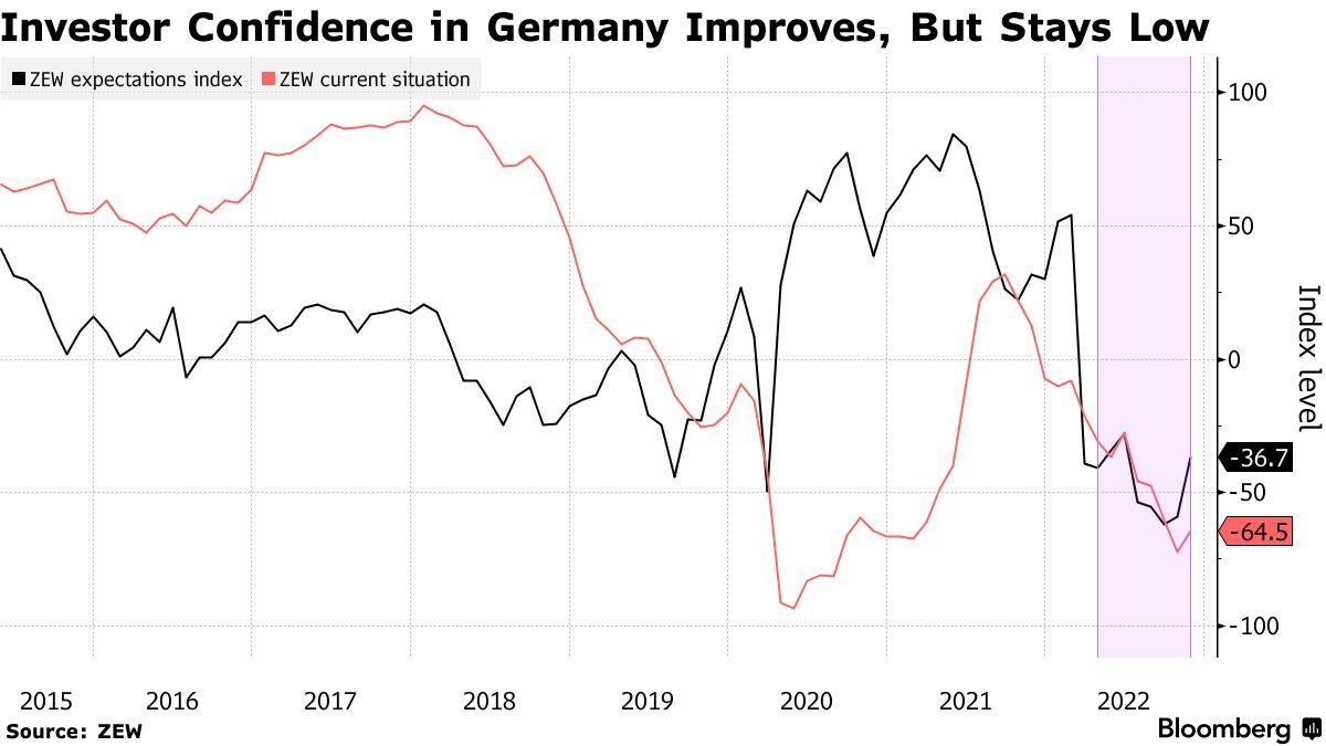 智通财经APP获悉,投资者对德国经济前景的信心指数反弹至6月以来的最高水平,创纪录的通胀可能正在见顶。欧洲经济研究中心(ZEW)的预期指数从上月的-59.2攀升至-36.7,好于经济学家预期,但仍低于对经济衰退预期的长期平均水平。