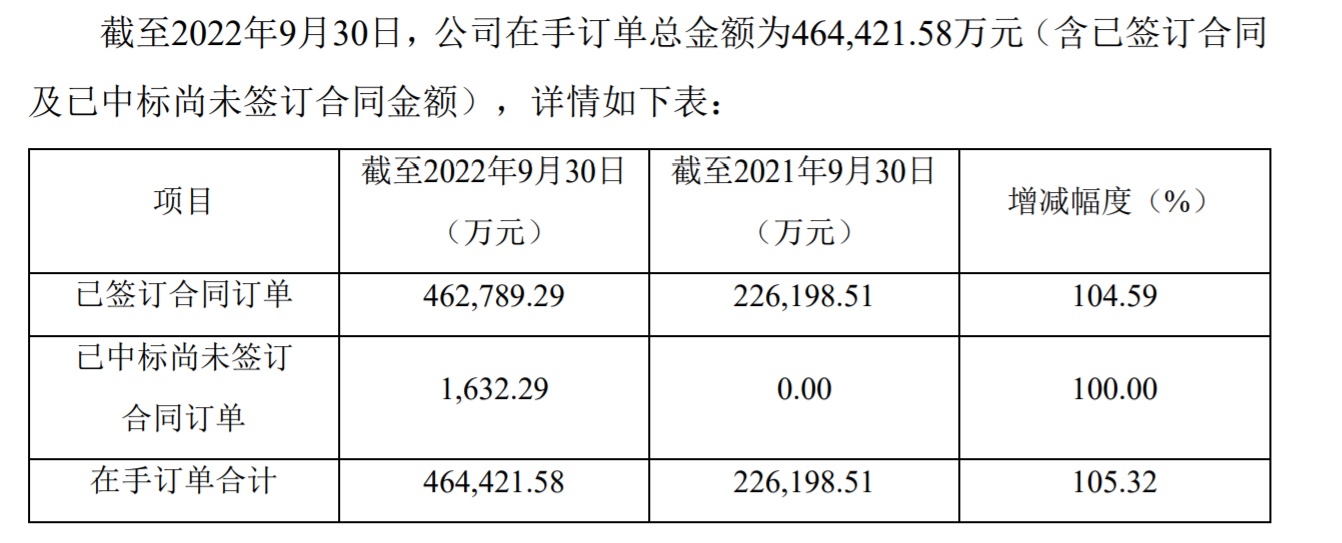 在盛美上海此前披露的数据中,截至2022年9月30日时,其在手订单总金额为46.44亿元,同比增长105.32%。对于半导体设备企业而言,在手订单是最重要的指标之一,业绩代表的是过去已交付设备的情况,而在手订单则代表着未来公司的成长预期,是资本市场关注的焦点。