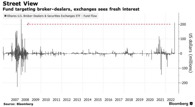 智通财经APP获悉,经过数月几乎没有任何资金流入或流出后,iShares安硕美国证券经纪交易商指数基金(iShares US Broker-Dealers & Securities Exchanges ETF)(IAI.US)周一净流入增加了2.11亿美元。这是该产品自2006年推出以来第二高的资金流入,也是十多年来仅有的两次超过1亿美元的资金流入之一。该ETF基金凭空冒出了自2008年2月以来最大的资金流入。