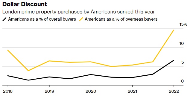 Knight Frank汇编的数据显示,在2022年上半年,所有伦敦优质房产的海外买家中,美国人占到了14.5%,这一比例高于前六个月的6.2%,也是自2018年初以来数据中占比最大的。