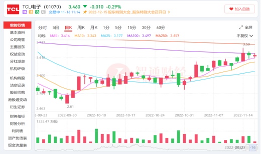 智通财经APP注意到,TCL电子近期大幅向好的销售表现,刺激了投资者做多公司股价的热情。11月,TCL电子股价月内最高涨幅达到19.7%。自9月30日2.61港元的股价低点,至11月15日收盘的3.47港元,TCL电子期间股价涨幅达到33%。