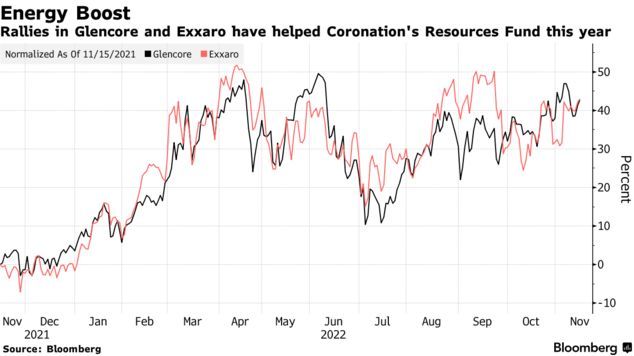 俄乌战争爆发后,煤炭等大宗商品价格飙升,推升了嘉能可和南非矿业公司Exxaro Resources的股价,而它们正是Coronation Resources Fund主要持有的股票。总部位于南非开普敦的Coronation Fund Managers目前管理着约5740亿兰特(330亿美元)的资产。