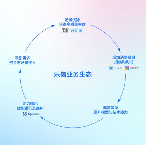 乐信的客群和场景优势、数据和技术底层能力,和业务有机结合,正组成一个循环增强的路径。高频、高粘性的电商业务搭建了独具特色的消费场景,持续为消费金融主业提供优质客群;而消费金融主业积累下来的技术和风控能力,又可以输出给银行、商户等合作伙伴,支持金融数科等新业务的发展;这反过来又可以吸引更多资金和场景接入,开启新一轮循环。乐信独有的业务生态互相协同,既让乐信发展出多元的非金融业务,也能够更稳健地应对复杂多变的外部环境。