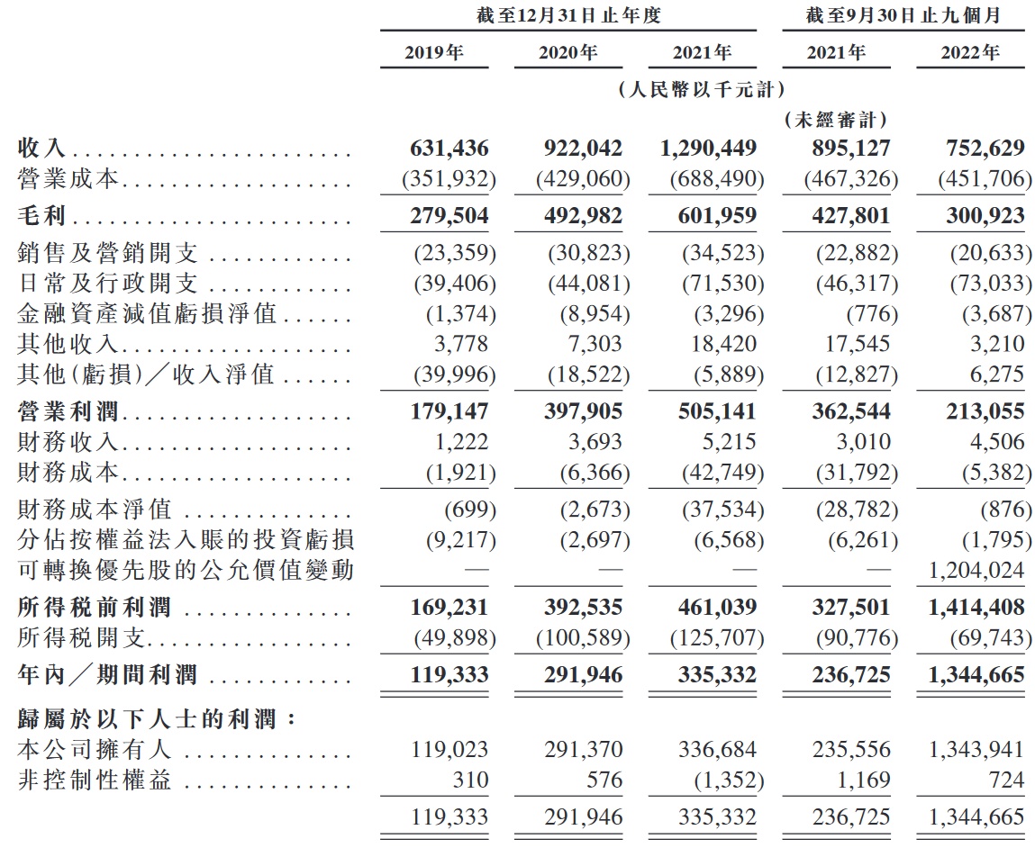 财务方面,于2019年、2020年、2021年及截至2022年前九个月,乐华娱乐集团收入分别约为6.31亿元、9.22亿元、12.9亿元、7.53亿元人民币;同期,公司利润分别约为1.19亿元、2.92亿元、3.35亿元及13.45亿元人民币。