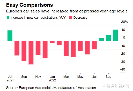 汽车制造商面临的半导体和其他零部件供应瓶颈有所缓解,但欧洲的能源危机正在推高成本并阻碍实质性的复苏。尽管与一年前的糟糕表现相比,欧洲10月新车销量实现了增长,但仍远低于几年前的水平。