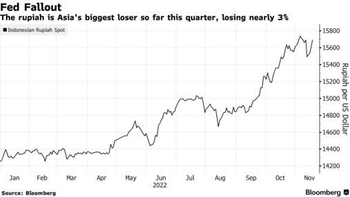 由于受到全球波动的打击,印尼盾本季度贬值近3%,印尼此次加息将有助于保护该货币。随着美联储和其他主要央行激进收紧政策,外国资金在10月1日至11月15日期间抛售了近5.4亿美元的印尼国债。