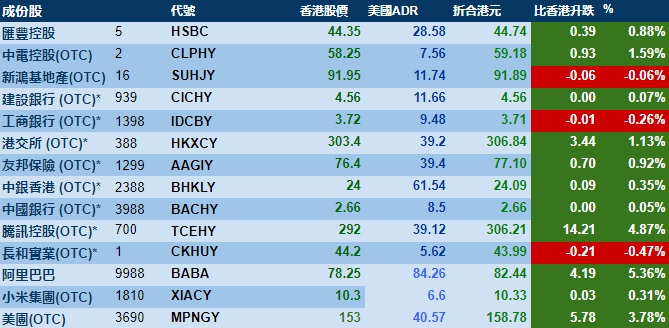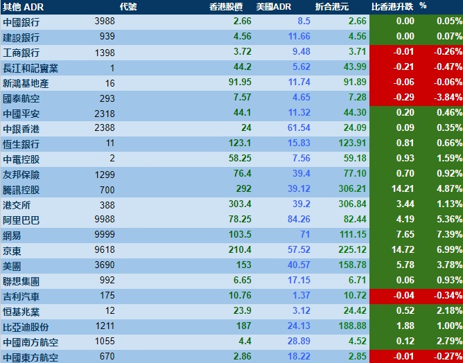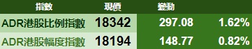 智通财经APP获悉,周四美股三大指数集体收跌,港股ADR指数上涨,按比例计算,收报18342点,较香港收市涨297.08点或1.62%。