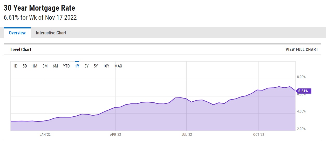 在美联储为抑制不断飙升的通货膨胀率而采取的史无前例加息举措刺激下,2022年的大部分时间里,抵押贷款利率都在上升。