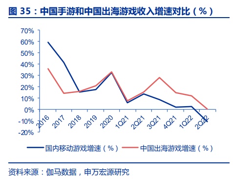 与此同时,今年上半年出海游戏增速与国内手游增速继续保持着较大的剪刀差,且出海对整体游戏的贡献占比进一步提升至30%,换言之出海对中国游戏公司增长的权重持续提升。
