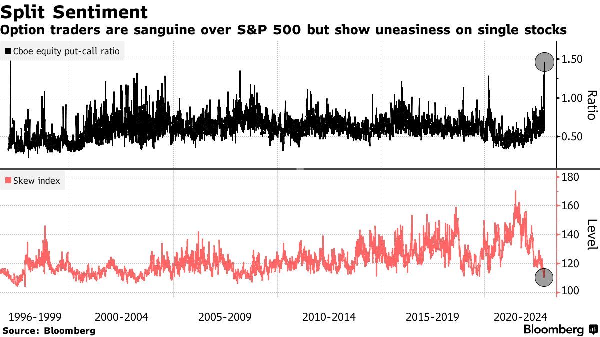 期权交易员对标普500指数持乐观态度,但对单只股票表现出不安情绪