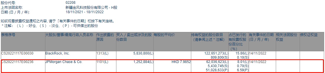 智通财经APP获悉,香港联交所最新资料显示,11月14日,小摩增持金风科技(02208)125.2884万股,每股作价7.9852港元,总金额约为1000.45万港元。增持后最新持股数目约为6203.66万股,最新持股比例为8.01%。