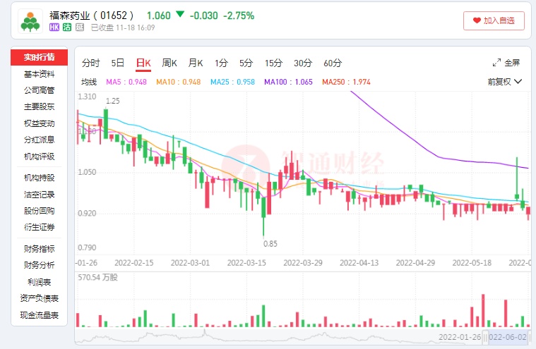 然后,即便身披“抗疫概念”,福森药业的股价还是表现的较为冷淡:11月18日收盘,该股下跌2.75%至1.06港元,成交量为0。而自11月11日以来,其股价仅涨逾10%,涨幅相较于其它抗疫概念股而言还是比较逊色了。