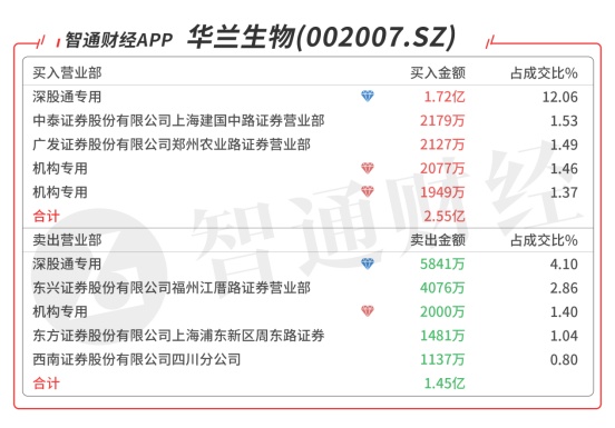 华兰生物(002007.SZ):龙虎榜阵容豪华,机构席位买入2026万元,深股通大单对倒净买入1.13亿元,买二是顶级游资章盟主的席位买入2058万元,当日净买入1.23亿元,该股如突破年线,后市有望加速。