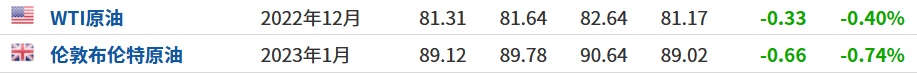 3. 截至发稿,WTI原油跌0.40%,报81.31美元/桶。布伦特原油跌0.74%,报89.12美元/桶。
