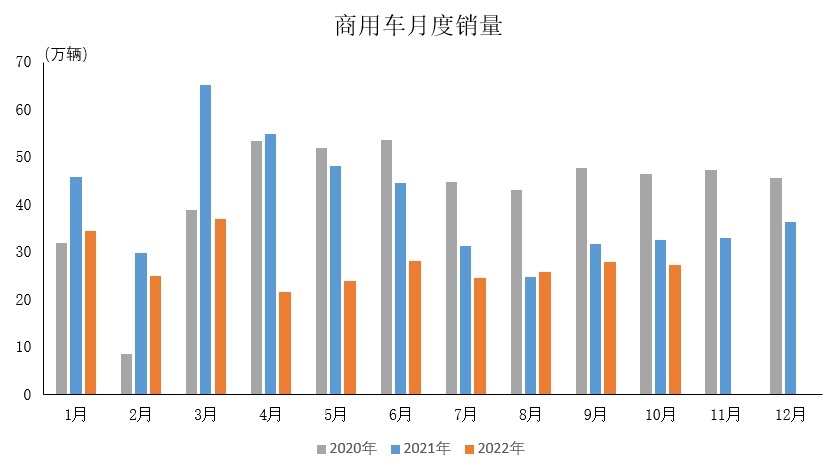 智通财经APP获悉,11月21日,中汽协发布2022年10月商用车产销情况。据中国汽车工业协会统计分析,2022年10月,商用车作为生产资料的属性,市场恢复难度更大,仍处于低位徘徊态势。2022年10月,商用车产销分别完成26.5万辆和27.3万辆,产量环比增长0.8%,销量环比下降1.8%,同比分别下降22.7%和16.2%。2022年1-10月,商用车产销分别完成269.1万辆和275.7万辆,同比下降31.7%和32.8%,降幅较1-9月收窄0.9个百分点和1.4个百分点。