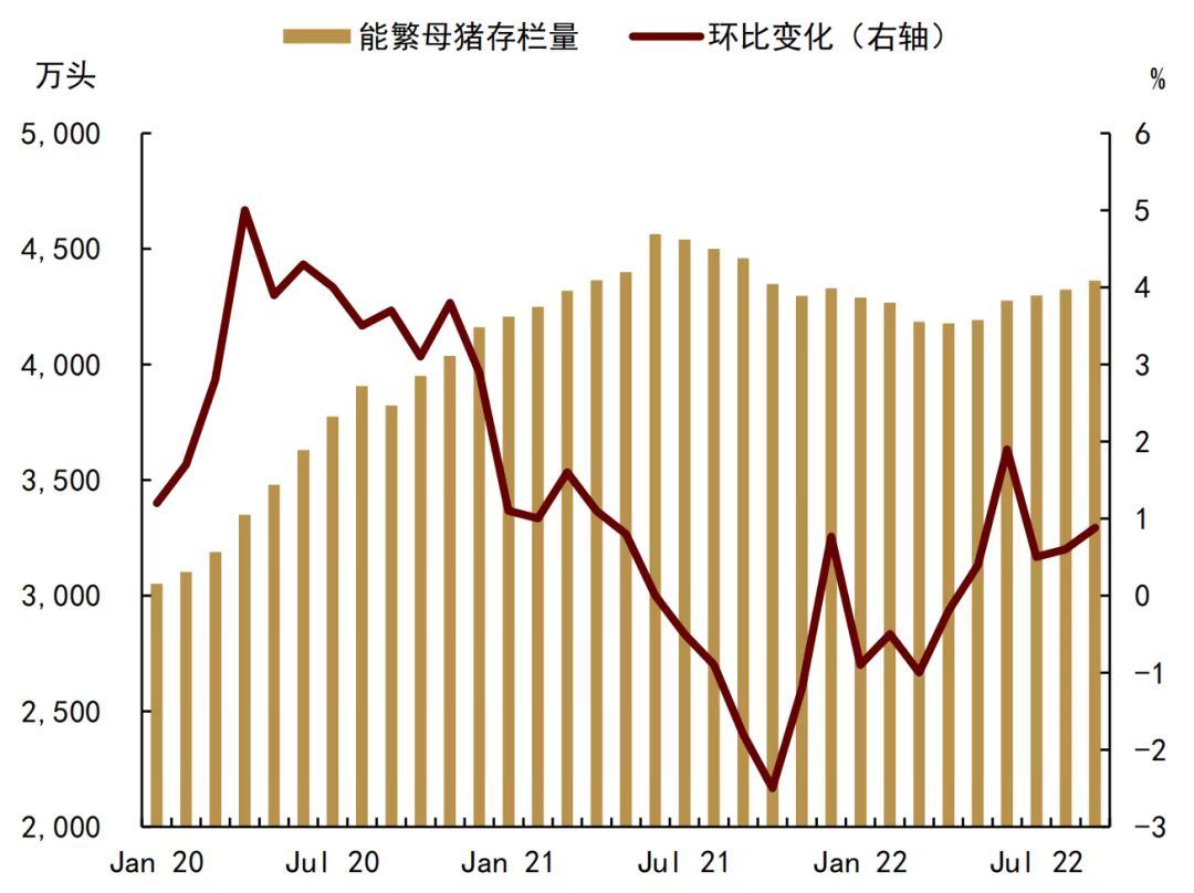 向后看,我们预计养殖端出栏积极性或进一步提升,叠加二次育肥供应增量,供给压力将继续释放;旺季下需求亦有增量,但不确定性较大。短期11月猪价或以弱势为主,12月消费虽有旺季提振,但供给压力或抑制价格上行高度,我们维持四季度生猪均价25.5元/kg的判断。展望1H23年,我们看到能繁母猪存栏拐点已于2022年上半年出现,已连续6个月走强,我们预计1H23生猪的潜在供应相对充足,生猪价格或先降后稳,考虑到2022年猪价基数整体较低且季节分布前低后高,2023年生猪价格同比或大概率呈现先高后低。我们预计,外三元生猪1Q23均价21.5元/KG,2Q23均价18.8元/KG。