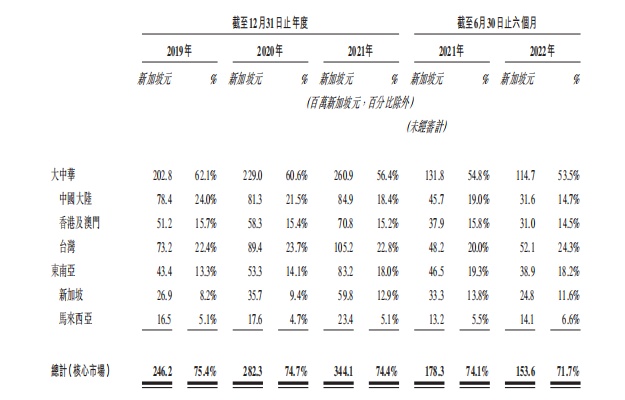V3 Group的主营业务十分简单,养身椅及按摩椅其主要产品类别,根据招股书,公司拥有OSIM品牌,自2016年起为亚洲市场份额第一的亚洲的高端按摩椅产品品牌。2019年至2022年上半年(以下简称:报告期内),分别占收益总额约71.2%、71.0%、70.2%及72.6%,贡献超七成营收。