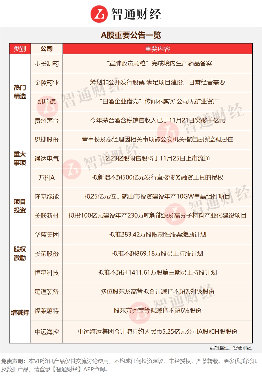 【A股重要公告一览】