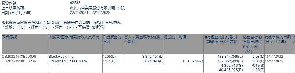 智通财经APP获悉,香港联交所最新资料显示,11月15日,小摩增持广汽集团(02238)302.4093万股,每股作价5.4663港元,总金额约为1653.06万港元。增持后最新持股数目约为1.87亿股,最新持股比例为6.03%。