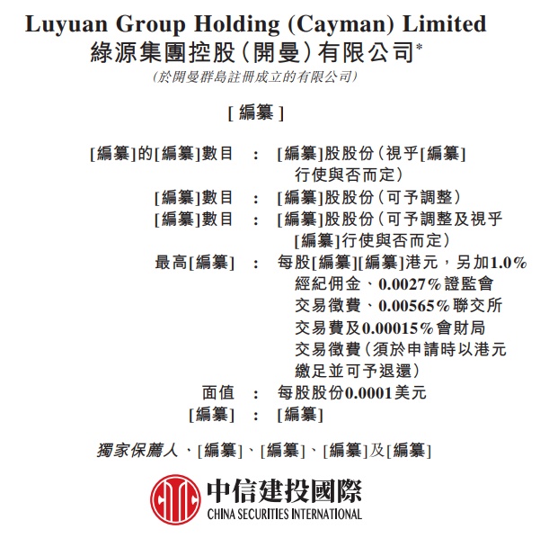 智通财经APP获悉,据港交所11月22日披露,绿源集团控股(开曼)有限公司(Luyuan Group Holding (Cayman) Limited)递表港交所主板,中信建投国际为其独家保荐人。