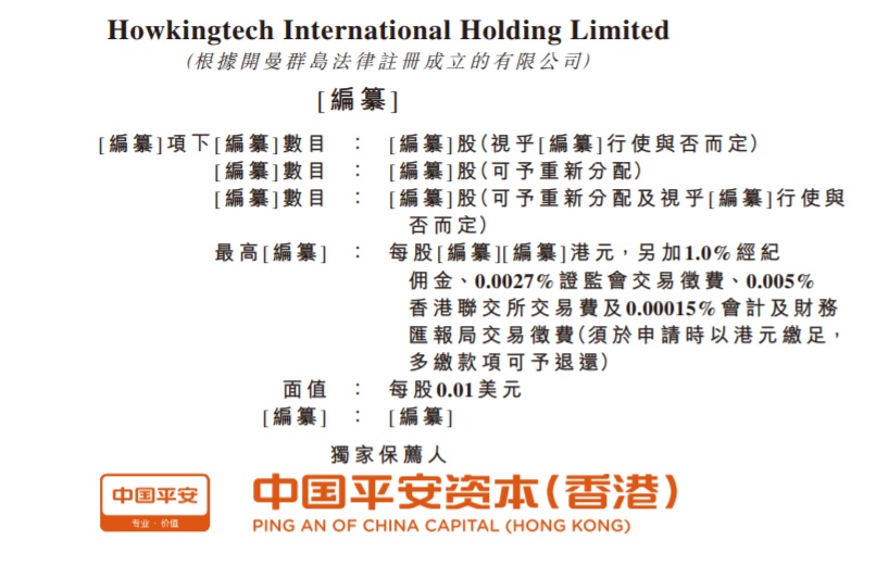 智通财经APP获悉,据港交所11月22日披露,Howkingtech International HoldingLimited(简称“濠暻科技”)通过港交所上市聆讯,平安资本为独家保荐人。