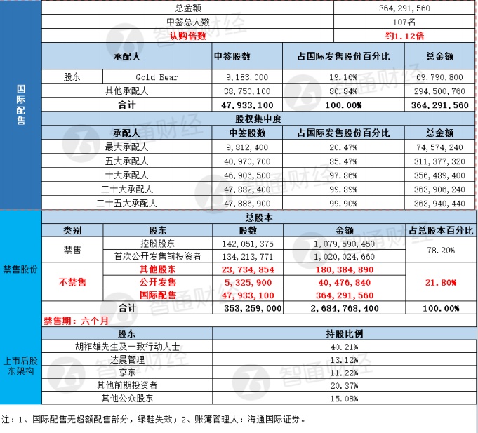 国际配售申购人数未披露,认购倍数约1.12倍。
