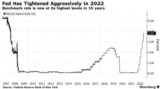政策方面,美联储今年采取了积极的货币紧缩政策,其中包括在过去四次政策会议中每次加息75%(为通常规模的三倍)。