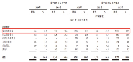 此外从研发角度来看,益世科生物难以称得上一家“高科技”企业,近3年公司研发开支占当期营收比重分别仅为1.6%、0.9%和1.9%。并且其中研发人员薪酬开支占公司研发开支比重逐年上升,并在2021年超过50%,截至今年上半年,公司研发人员薪酬开支占公司研发开支比重达到67.9%。