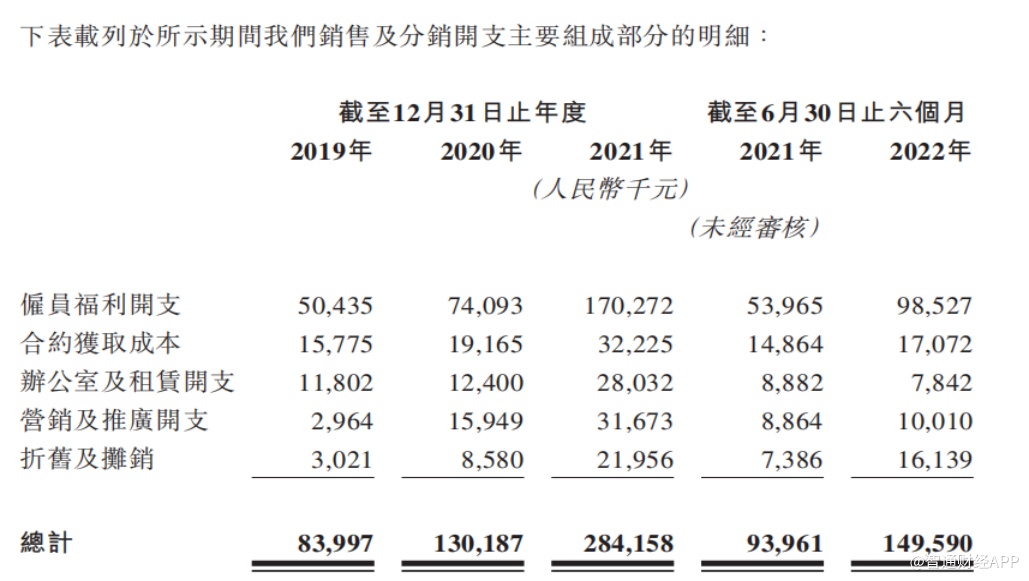 竞争角力之下,企业为了获客及提高客户留存率,相应增加费用开支在清理之中,这也反映到迈富时的财务报表上。以2021年为例,公司的销售及分销开支、行政开支、研发开支金额均大幅增长,其中,销售及分销开支达到2.84亿元,同比增长118.5%,期内销售及分销开支占收入的比重达到32.4%。