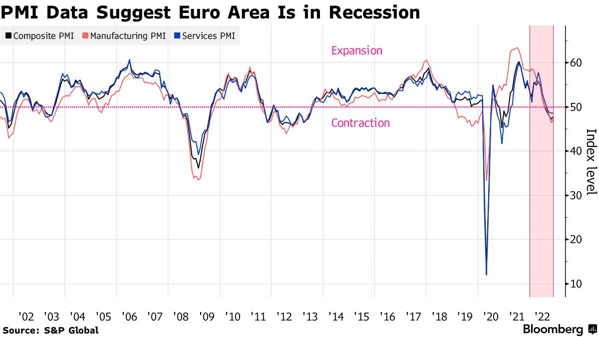 随着创纪录的通货膨胀率开始降温和市场对未来生产活动的预期改善,欧元区企业看到了该地区经济下滑迹象正在逐步缓解。