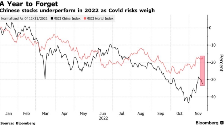 其他华尔街人士最近也对中国股票持积极态度。花旗表示,中国放宽疫情管控以及推出对房地产行业的支持措施,应该会提振公司盈利,摩根士丹利则上调了对中国股票指数的目标位,预计MSCI中国指数到明年年底将上涨14%。