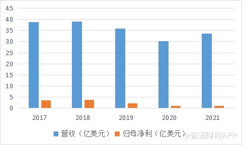 不过,在研发费用方面,公司近年研发投入占比仍处于较低水平,技术创新实力存疑。2017-2021年,公司研发支出分别为2.43亿美元、2.72亿美元、2.96亿美元、2.74亿美元和2.71亿美元。2021年,公司研发支出占收入比例约为8.07%。