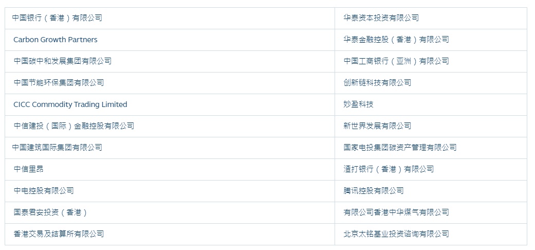 据介绍,Core Climate至今已吸引逾20家来自中国香港、中国内地以至国际上不同行业的机构参与,包括: