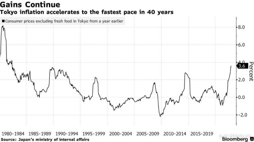 智通财经APP获悉,日本内务省周五公布的数据显示,11月东京不含生鲜食品的核心CPI同比上涨3.6%,达到1982年4月以来的最高水平,也超过了市场预期的3.5%,其中加工食品价格进一步上涨推动了通胀上升。东京的通胀速度加快,意味着11月日本全国的物价上涨也将加快。