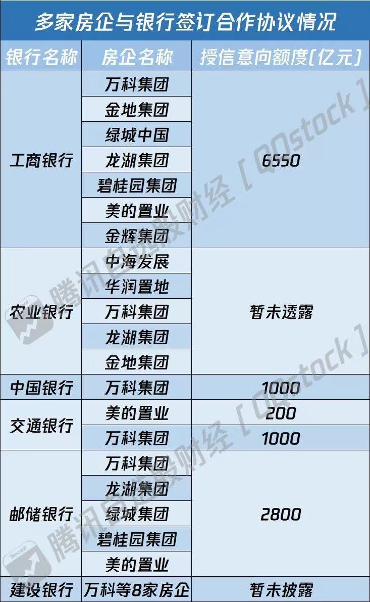 24日晚间,中国工商银行与万科集团、金地集团、绿城中国、龙湖集团、碧桂园集团、美的置业、金辉集团等12家全国性房地产企业,提供意向性融资总额达6550亿元。