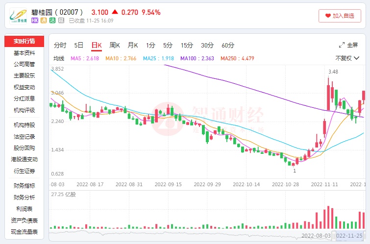 11月24日,港股地产股涨嗨了,板块以6.04%的涨幅稳居头部位置,房企龙头碧桂园更是以20cm的涨势引人瞩目。而在此之前的11日、14日,碧桂园甚至还分别录得34.94%、45.54%的涨幅,不到1个月的时间股价上涨了约207%。