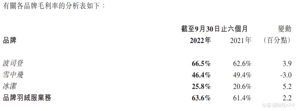 财报显示,截至2022年9月30日止六个月,波司登实现收入61.8亿元(人民币,下同)同比增长14.1%,净利润达到7.34亿元同比增长15%,经营利润率同比提升0.6个百分点至15.3%。基于良好的业绩表现,波司登宣派中期股息每股普通股4.5港仙。