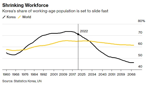 老龄化问题在发达国家日益受到关注,韩国和日本是受影响最严重的国家之一。韩国去年打破了自己创下的全球最低生育率纪录,这加大了政策制定者保持低利率和充足财政刺激以刺激经济增长的长期压力。